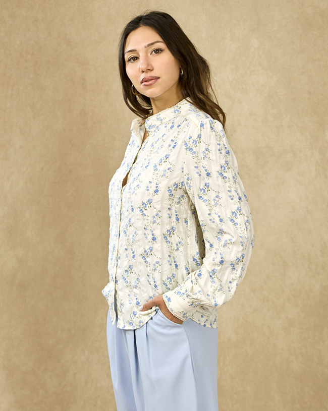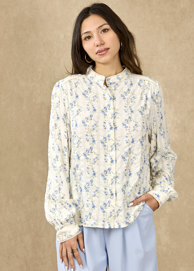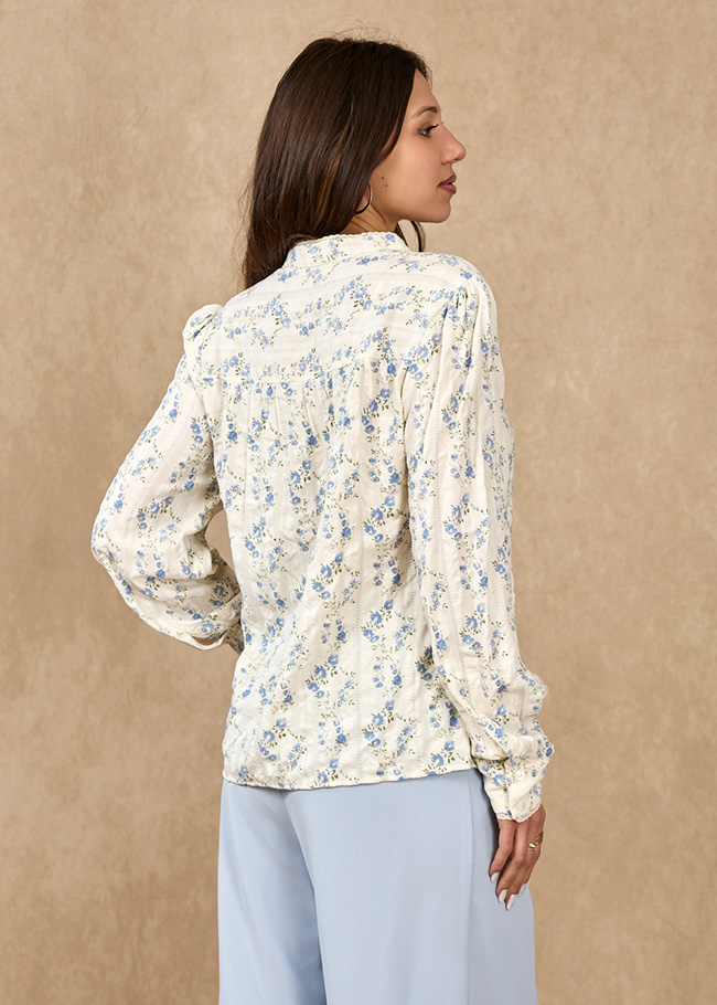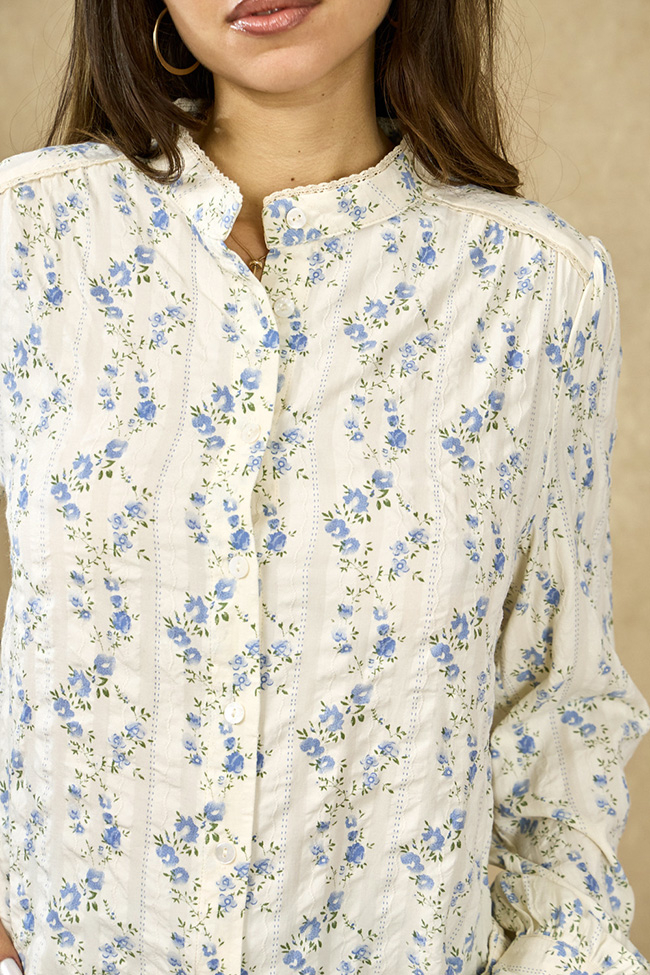Detalii: Imprimeu floral albastru, terminatii de dantela finuta,