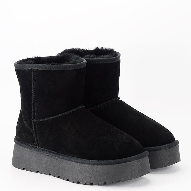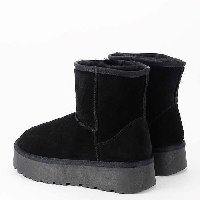 in interior sunt captusite cu blanita din lana INALTIMEA TOTALA - 18 cm INALTIME TALPA - 4.5 cm NUANTA - negru STIL - casual