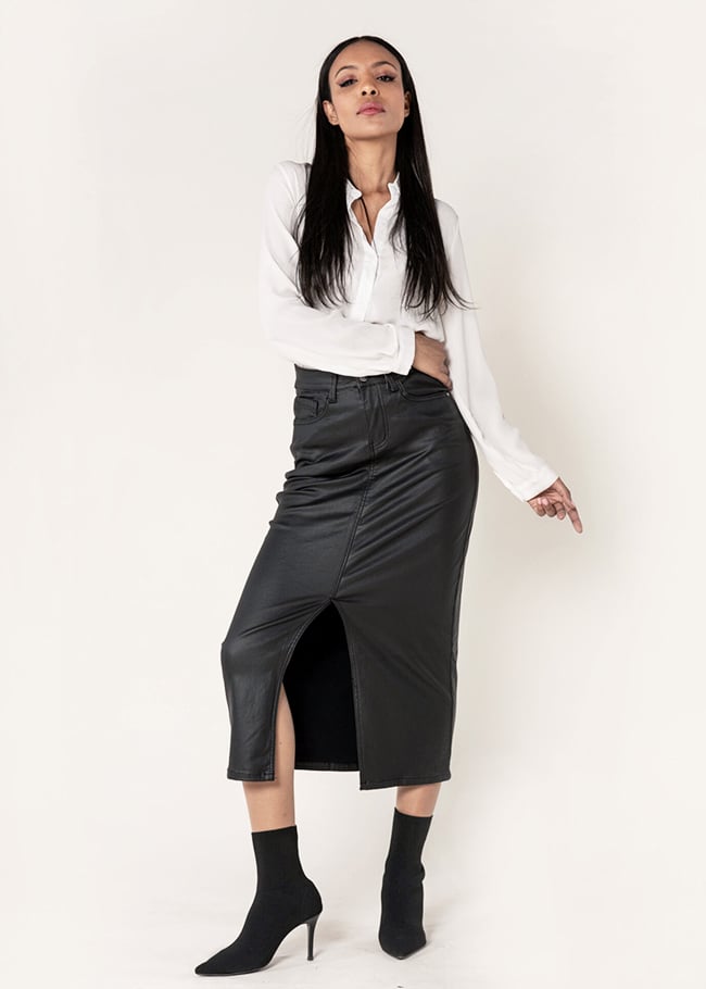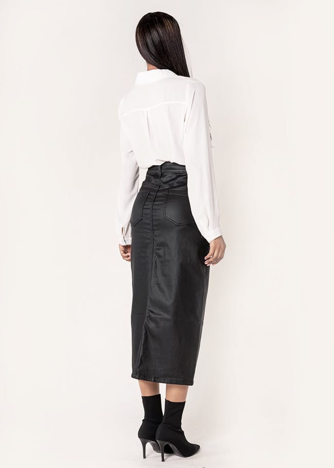 Nina Carter Fusta midi din piele ecologica Negru mat LC215 M9