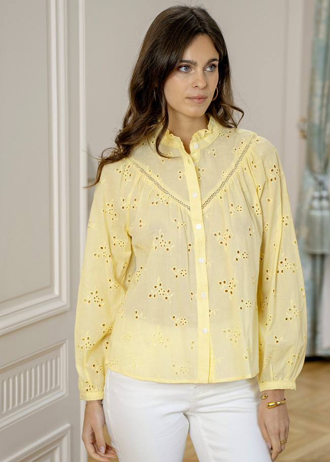 SOFILINE Camasa galbena din bumbac cu perforatii englezesti ASD97035 M9