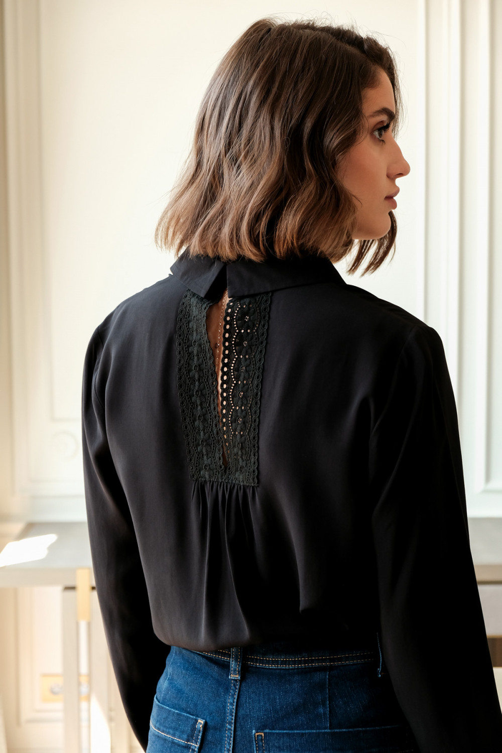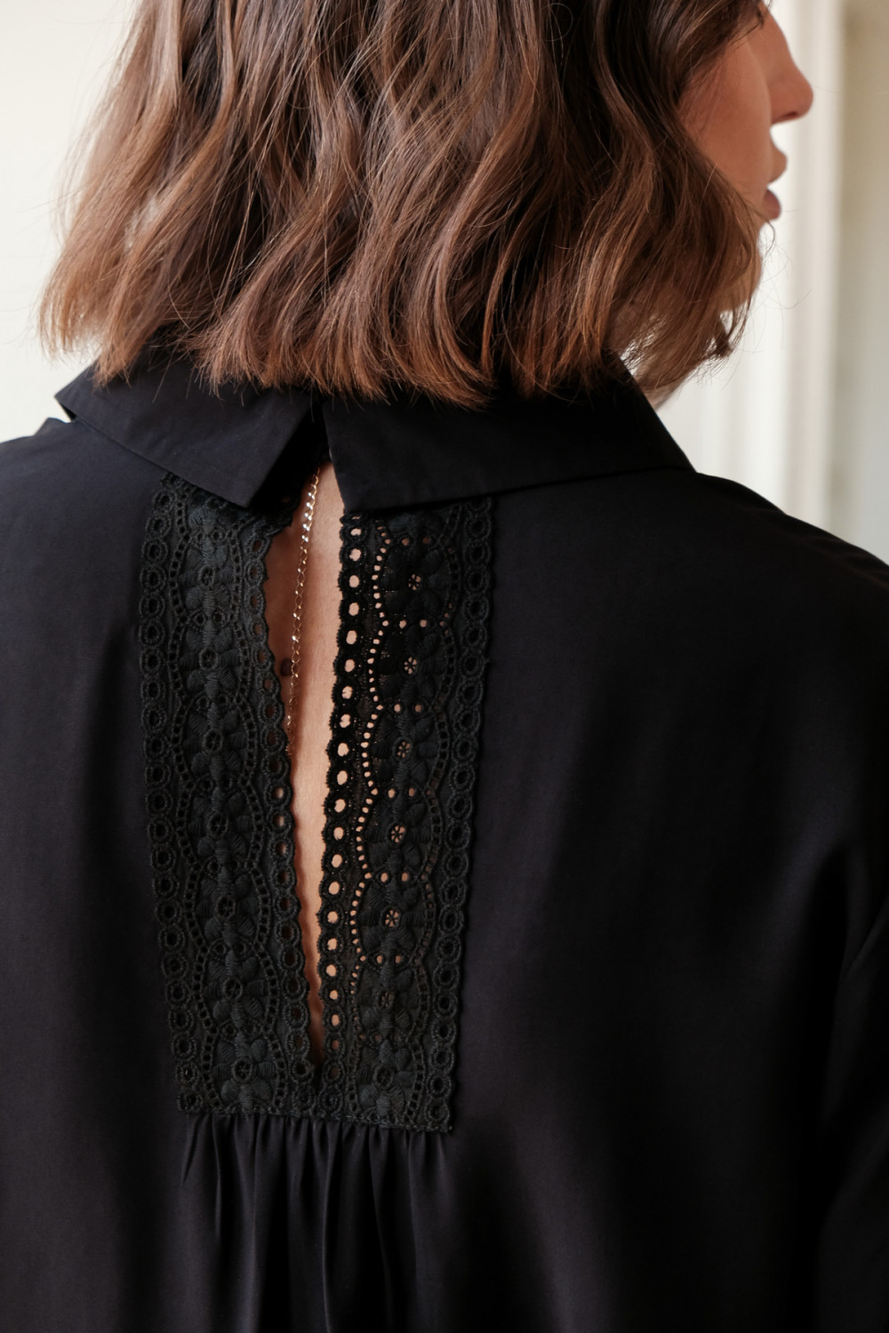 Detalii: Aplicatii de dantela la mansete si partial in partea din spate