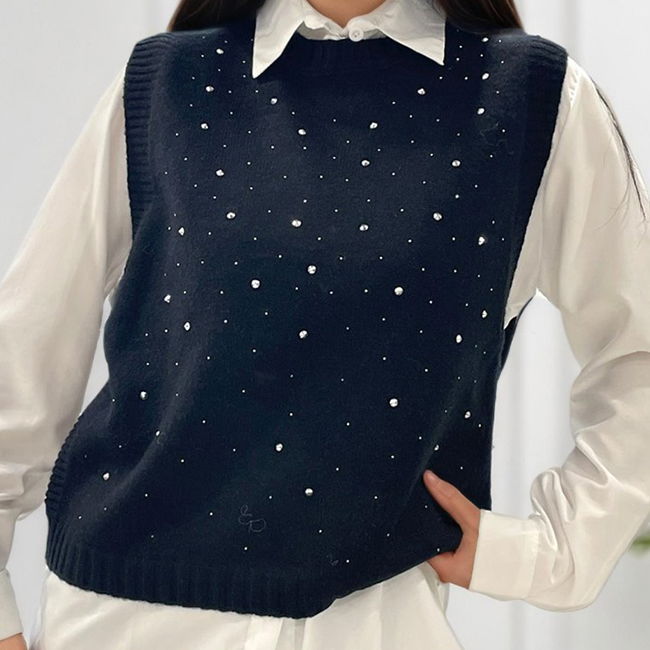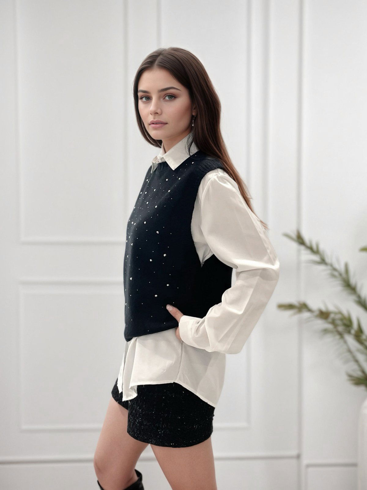 SOFILINE Pulover negru fara maneci cu strasuri A-9015 M9