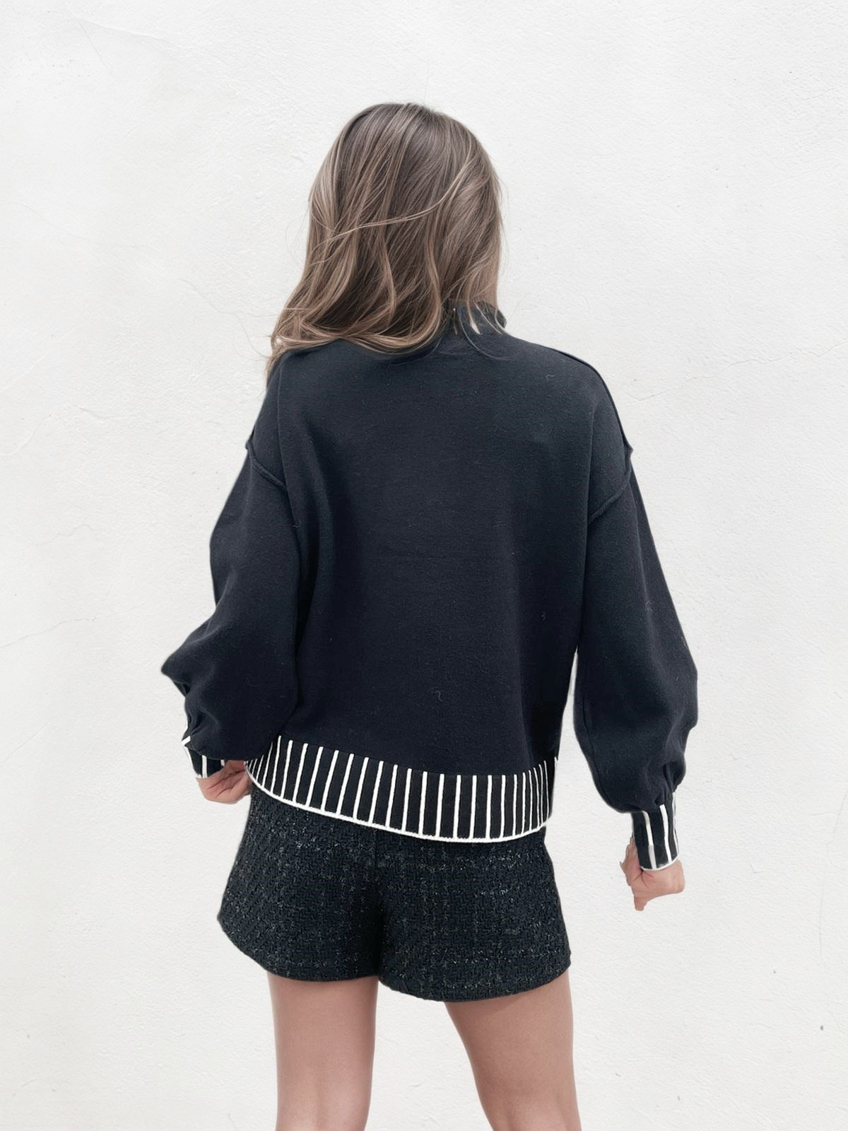 Detalii: Gulerul si mansetele prevazute cu dungi albe